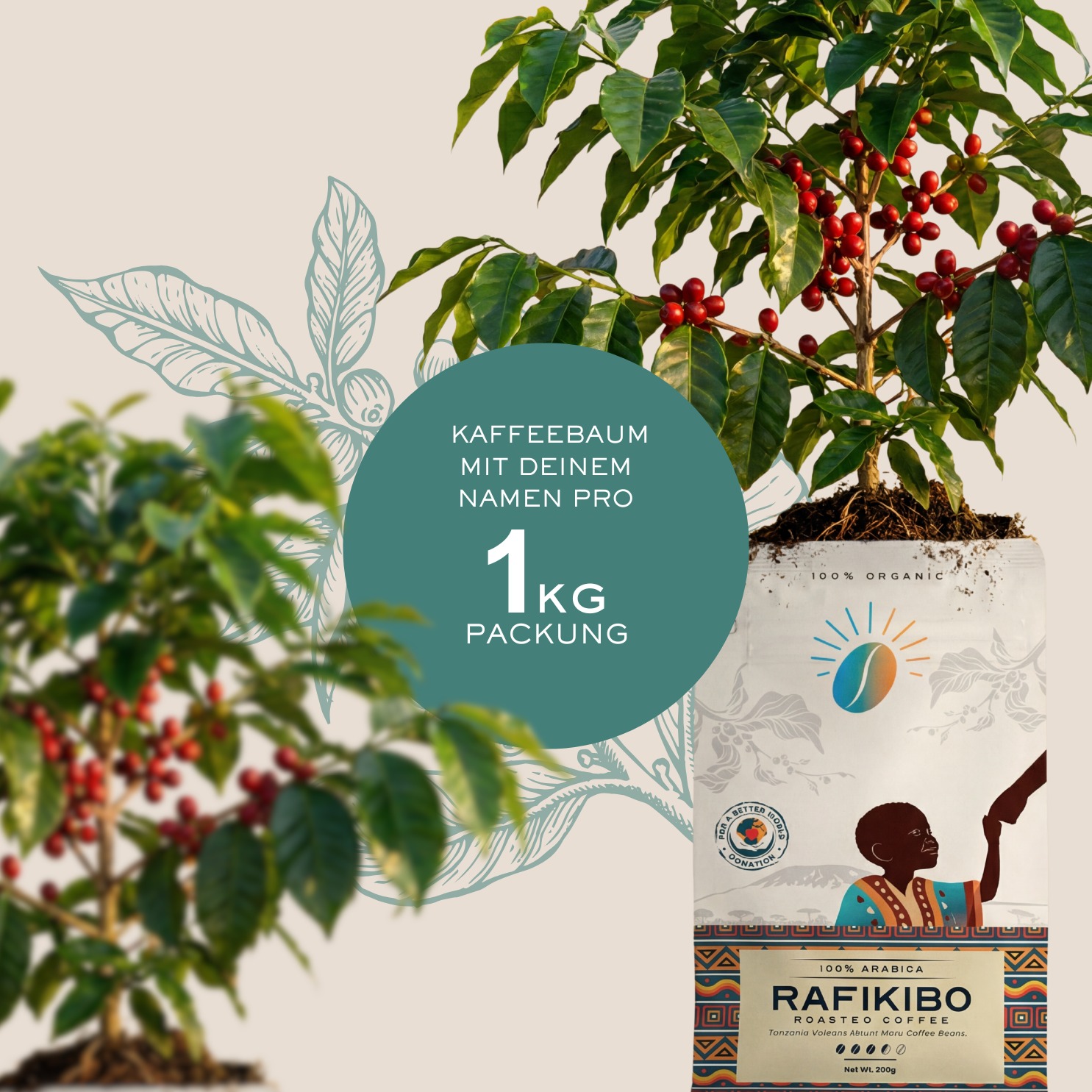 Für jede gekaufte 1kg Packung pflanzen wir in Tansania einen Kaffeebaum, der deinen Namen trägt – oder auf Wunsch den Namen einer anderen Person. So wachsen Genuss, Biodiversität und Zukunft Hand in Hand.
